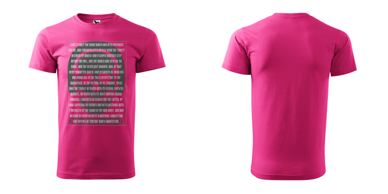 Krátký rukáv, 100% bavlna, gramáž 160 g/m2, tubulární střih, úzký lem průkrčníku z žebrového úpletu s 5 % elastanu, zpevňující páska od ramene k rameni, silikonová úprava. Barva: růžová.