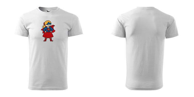 Krátký rukáv, 100% bavlna, gramáž 160 g/m2, tubulární střih, úzký lem průkrčníku z žebrového úpletu s 5 % elastanu, zpevňující páska od ramene k rameni, silikonová úprava. Barva: bílá.